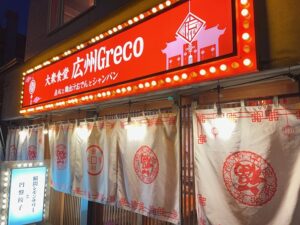 では、現在の函館はどうなのだろうか?つい先日、所用で函館へ行った際、五稜郭地区で見つけたのが、いかにも町中華風装いの「大衆食堂 広州Greco」という店だ。看板の下には「点心と鶏出汁おでんとシャンパン」と添えられている。“シャンパン”とはフランス・シャンパーニュ地方のスパークリングワインである。ここまではっきり中華(点心)とワインを掲げている店を初めて見た。“おでん?”に疑問は残ったが、まずは入ってみたのである。