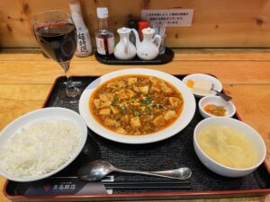 「麻婆豆腐定食」とグラスワイン(赤)